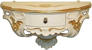 イタリア製 JHAアンティーク風・引き出し付コンソール (アイボリー&ゴールド)W495×D208×H270 IG-58 軽量レジン製飾り棚 ウォールシェルフ
