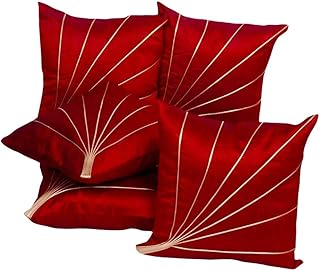 JDX マルーン ゴールデン デコラティブ ストライプ エスニック クッション カバー 5 枚セット… 16x16 マロン