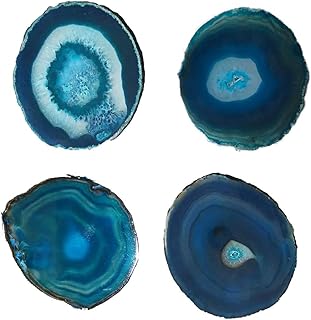 ナチュラルスライスされた瑪瑙コースター ゴムバンパー付き 4 枚セット 3-3.5' 2199918