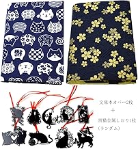 TAKA ブックカバー文庫 紺青 福猫+桜 2 枚セット +しおり