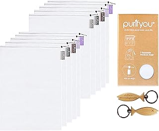 purifyou プレミアム メッシュ 食料品バッグ 風袋付き| 9個セット | 農産物や食料品の買い物 フルーツや野菜のバッグ | L 標準 ジッパーポーチ Set of 9 (5 Standard, 4 Large) ホワイト