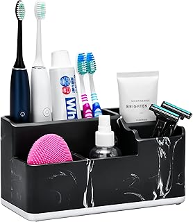 VITVITI 歯ブラシホルダー バスルームオーガナイザー カウンタートップ 5コンパートメント バスルームアクセサリーストレージ 歯磨き粉/化粧台カウンター/シンク用 ブラック樹脂 マーブルカラー