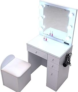 女優 ドレッサー 化粧台 LEDライト6個 椅子付き ドレッサーセット 【当店オリジナル】【完成品】