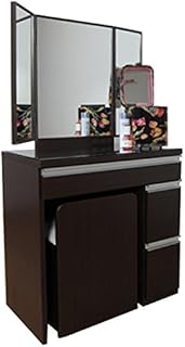 三面鏡 ドレッサー 椅子付き コンパクト 幅70cm 木製 (ブラウン) 【当店オリジナル】