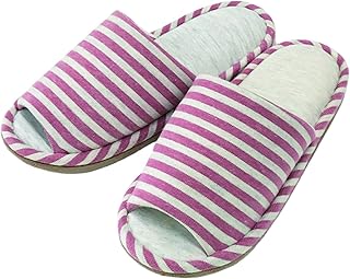 オクムラ スリッパ 洗える 前開き 音がしにくい Mサイズ ピンク 杢ニットボーダー 外縫い AAAA6011 PI