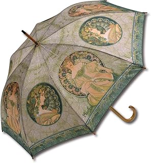 ユーパワー 傘 マルチカラー 58cm(親骨長) 木製ジャンプ傘 名画シリーズ ミュシャ「蔦と夢想」 AU-02205