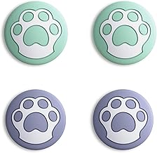 eXtremeRate PlayVital可愛いスイッチサムグリップキャップ、Nintendo Switchに対応用&Nintendo Switch Liteに対応用&NS OLEDに対応用ジョイスティックキャップ、Joy-Conコントローラー用のシリコンアナログカバー親指スティックグリップ【猫の肉球バージョン、シーフォームグリーン&ライトバイオレット】
